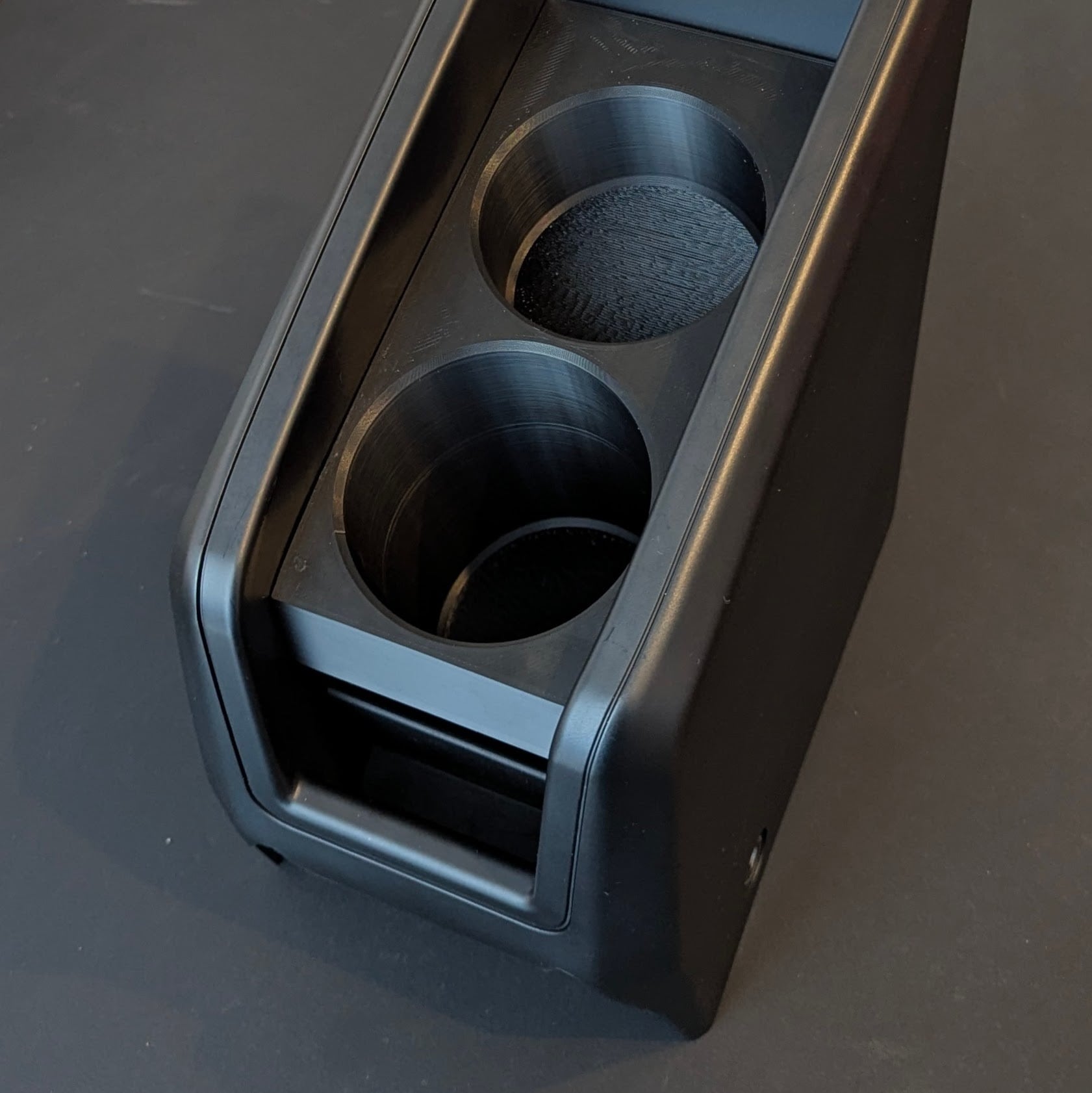後方のホルダーは物入れの形の制限から浅いため、背の高いものは入れないようにお願いします。3Dプリンター特有の積層跡や継ぎ目がございます。通常の使用には十分な強度がありますが、プラスチック製ですので、硬い床面などに落下すると割れる場合があります。